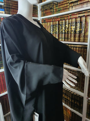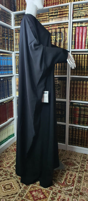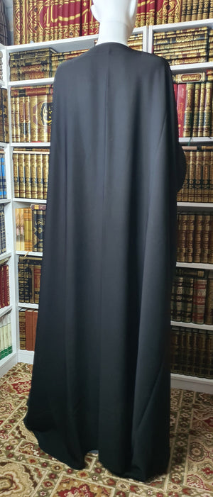 This is a beautiful abaya in the farasha style. It can also be worn as a shoulder jilbab. Very wide and great coverage. A very modest elegant abaya/jilbab.