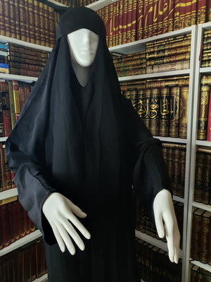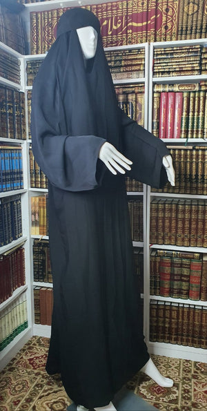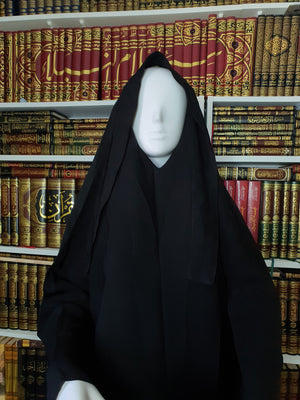 A very modest and luxury overhead jilbab with full sleeves and tying strands.